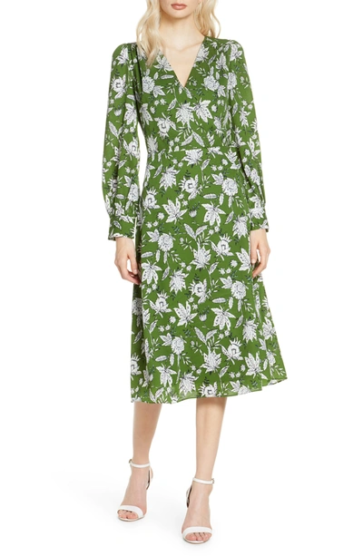 Chelsea28 Floral Long Sleeve Faux Wrap Midi Dress In Green White