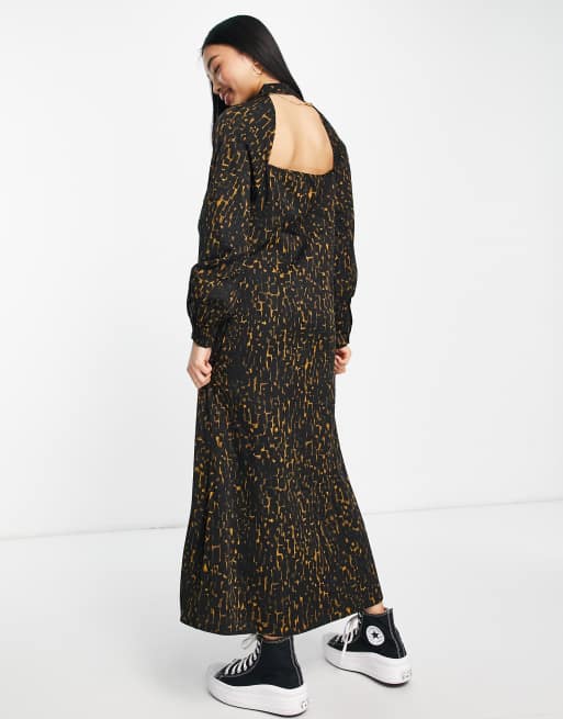 Fashion Union almost animal print cut out detail open back maxi dress in black