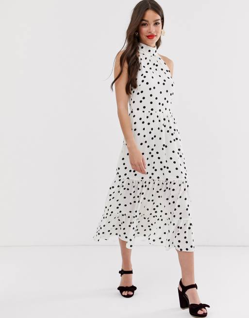 Oasis polka dot clearance midi dress, Buy Oasis Polka Dot Puff Sleeves Tie Neck Midi Dress In Black clearance