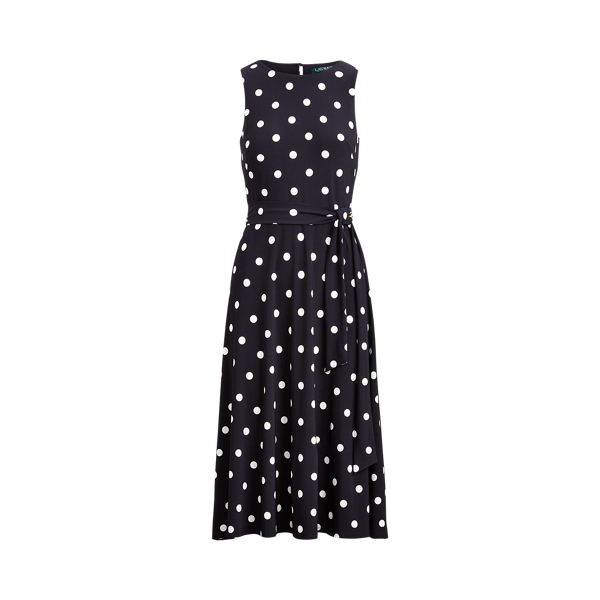 Lauren by Ralph Lauren Sleeveless A line Polka dot Dress in Black