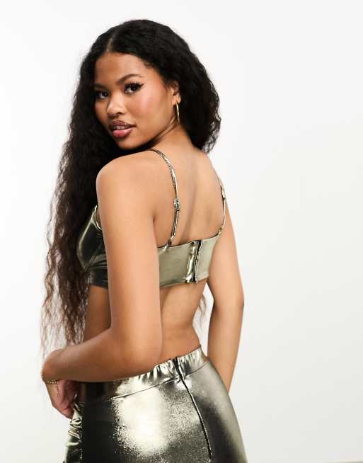 Jaded Rose Petite metallic cowl neck bralet in chrome part of a