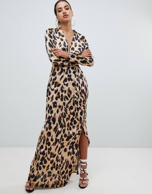 Missguided leopard print clearance wrap dress, Missguided Leopard Print Satin Wrap Front Top SportsDirect Malta clearance