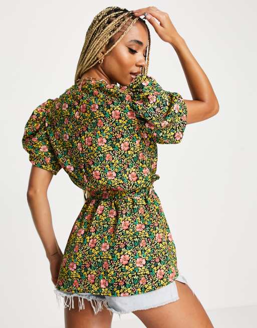 AX Paris puff sleeve wrap top in floral