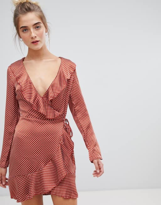Rust Polka Dot Wrap Over Midi Dress AX Paris