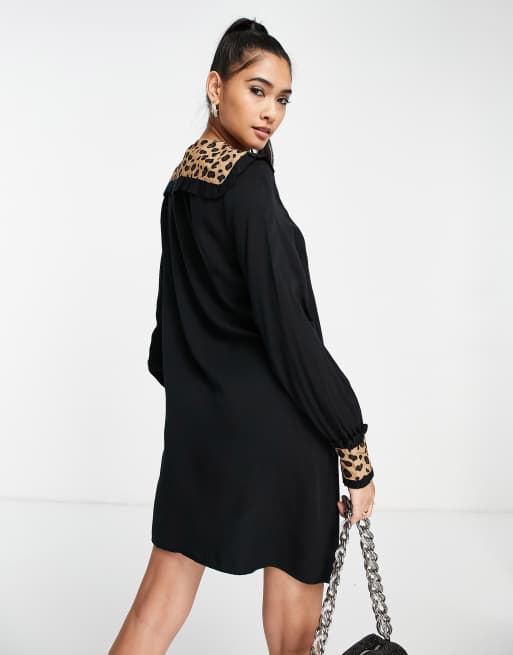Black dress with clearance leopard print collar, Brown Leopard Print Frill Collar Mini Dress New Look clearance