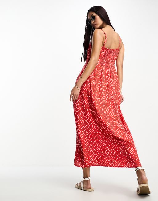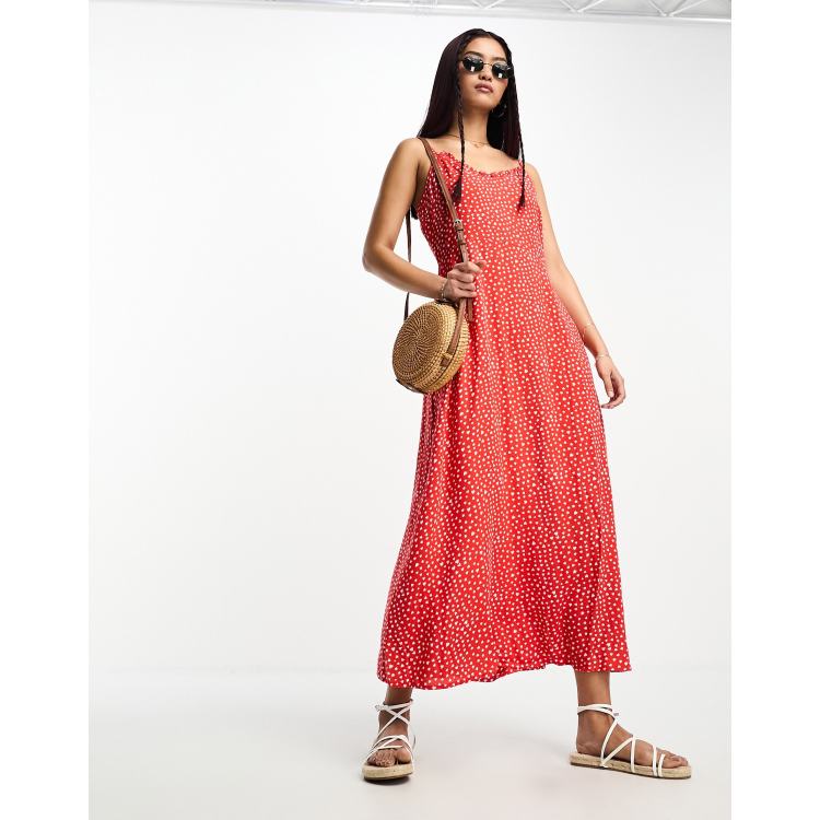 Red spot maxi clearance dress, Fashion Red Summer Women Polka Dot Long Dress Beach Dresses clearance