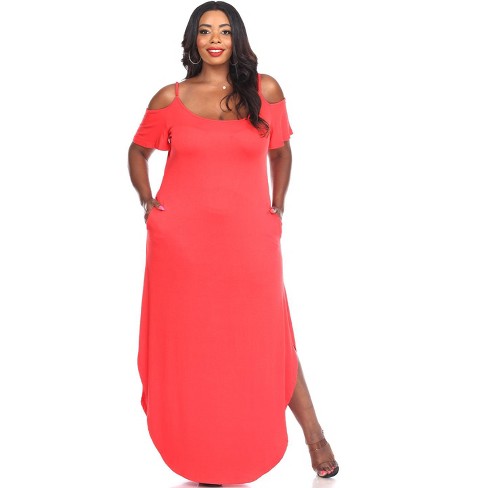 Women s Plus Size Cold Shoulder Lexi Maxi Dress With Pockets Red