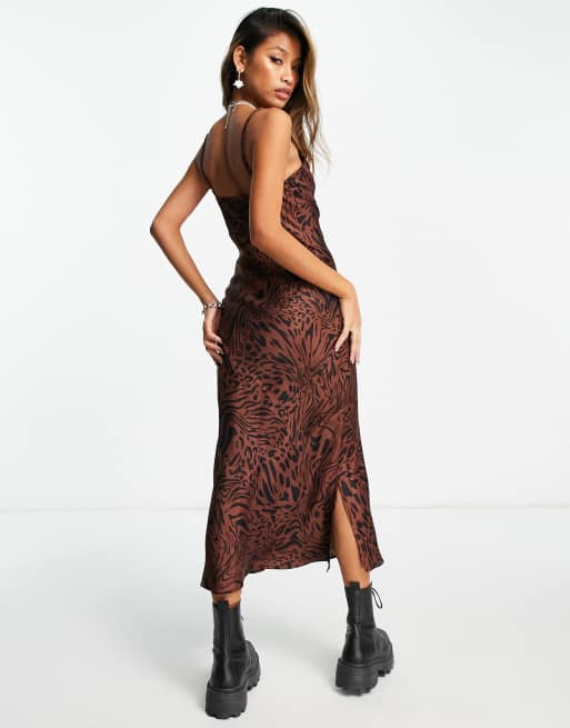 Bershka cowl neck satin mini dress in leopard print ASOS