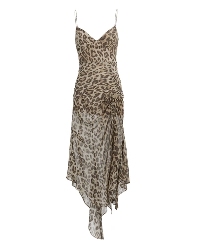 Nicholas Ruched Leopard Print Silk Crepe Long Sleeve Mini Dress US 4 Cocktail
