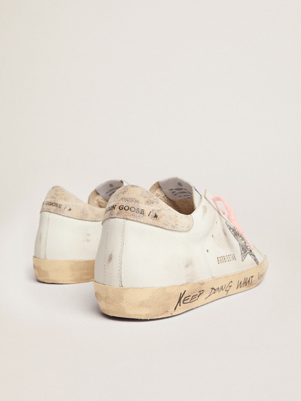 Super Star in cream mesh with glitter star and leopard heel tab