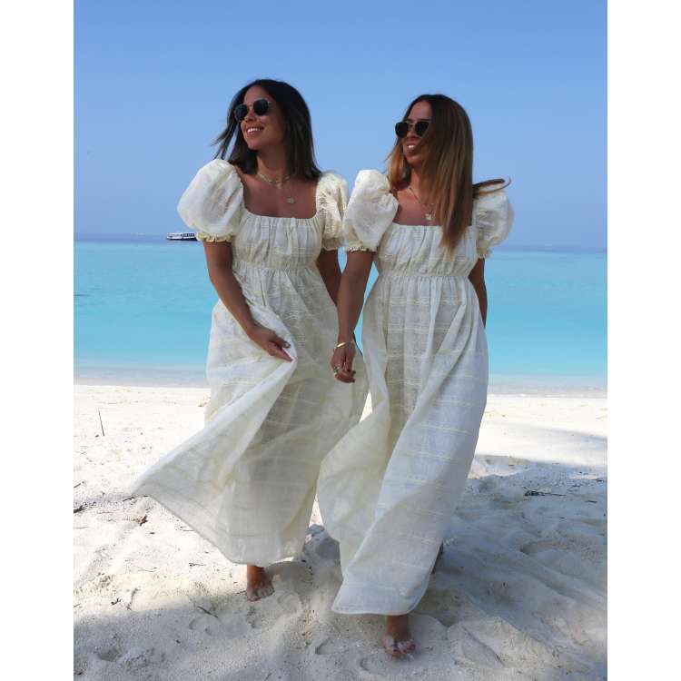 Square neck white clearance maxi dress, Sugar Cream Re Design Upcycled Linen Square Neck White Maxi Dress clearance