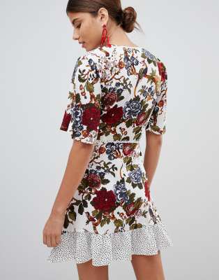 Missguided floral & polka clearance dot wrap tea dress, Multi colour Missguided Petite Floral Print Wrap Front Midi Tea clearance