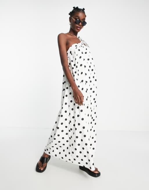 River Island polka dot one shoulder maxi dress in white