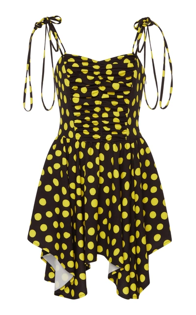 The Attico Ruched Polka Dot Organza Mini Dress Womens Black