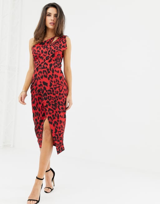Lavish alice one shoulder midi clearance wrap dress in leopard print
