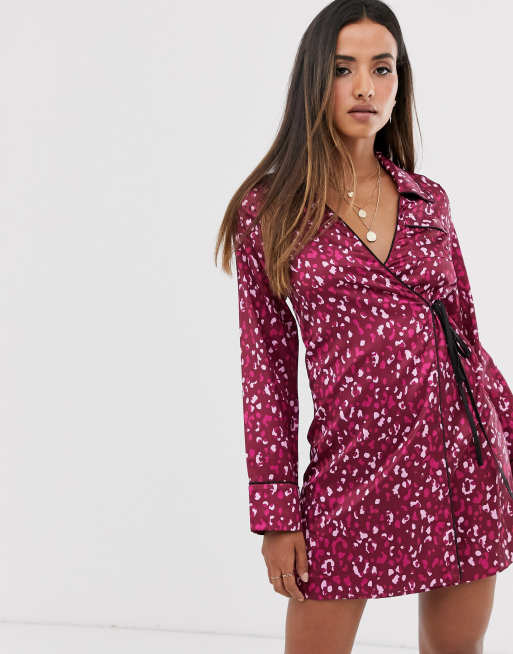 Fashion Union shirt dress with tie side in leopard print satin ASOS