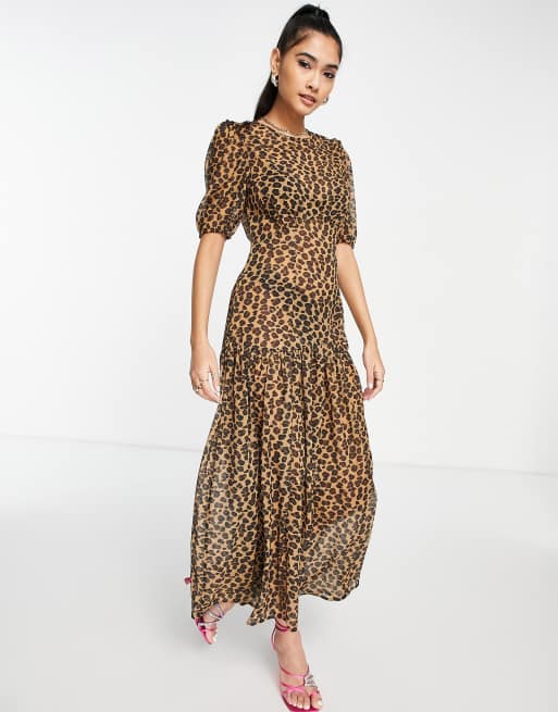 Sheer leopard midi clearance dress