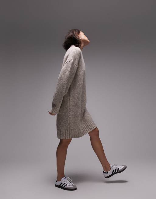 Topshop knitted crew neck mini jumper dress in mink ASOS
