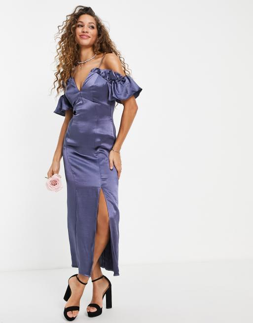 Topshop bridesmaid ruffle bardot dress in navy