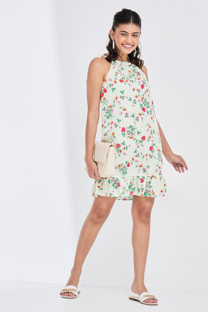 Buy INFUSE Cream Floral Tie Up Neck Polyester Women s Shift Fit