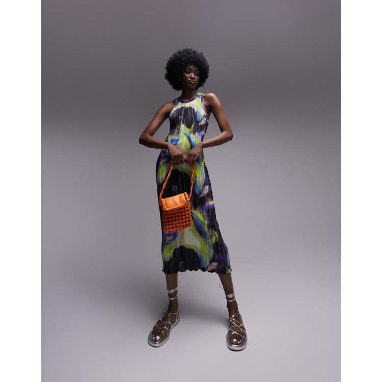 Topshop printed plisse jersey midi dress in multi ASOS