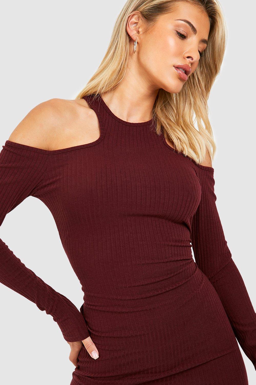 Women s Soft Rib Long Sleeve Shoulder Cut Out Mini Dress Boohoo UK
