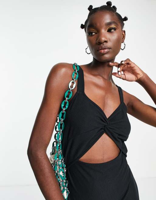 Topshop twist front cami midi dress in black ASOS