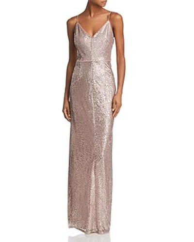 Adrianna Papell Sequined Column Gown In Rose Gold ModeSens