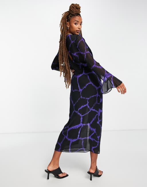 Topshop Woven Knot Front Plunge Occasion Midi Dress in Purple ASOS