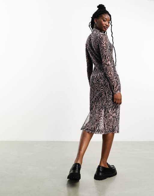 Zebra print mesh clearance midi dress, Black Zebra Print Mesh Long Sleeve Midaxi Dress New Look clearance