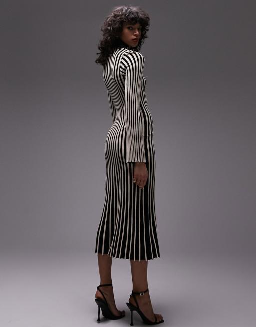 Topshop knitted stripe long sleeve midi dress in monochrome ASOS