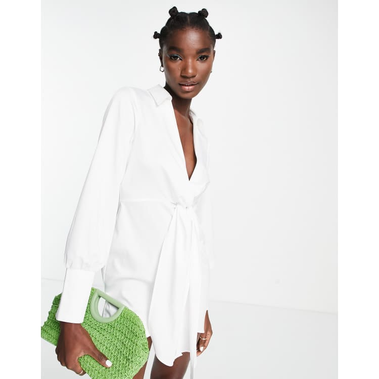 Topshop satin pleat clearance shirt dress, Topshop twist front mini satin shirt dress in white ASOS clearance