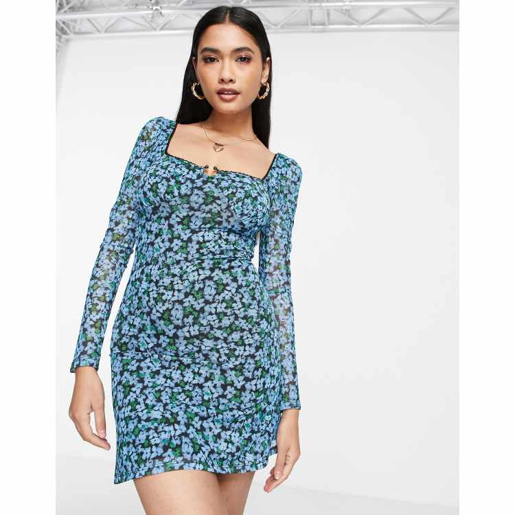 Topshop ring detail long sleeve mesh mini tea dress in multi ASOS