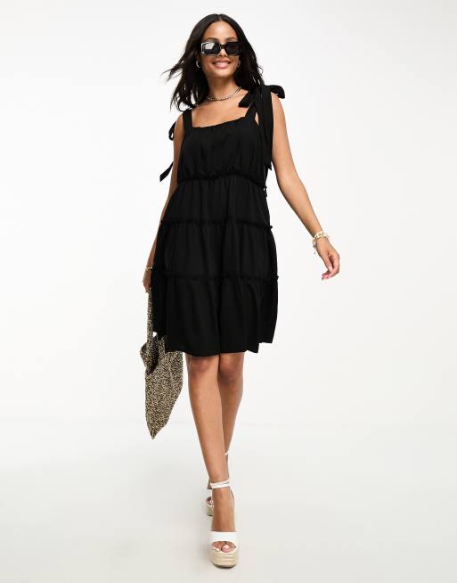 Vero Moda tie shoulder tiered mini dress in black ASOS