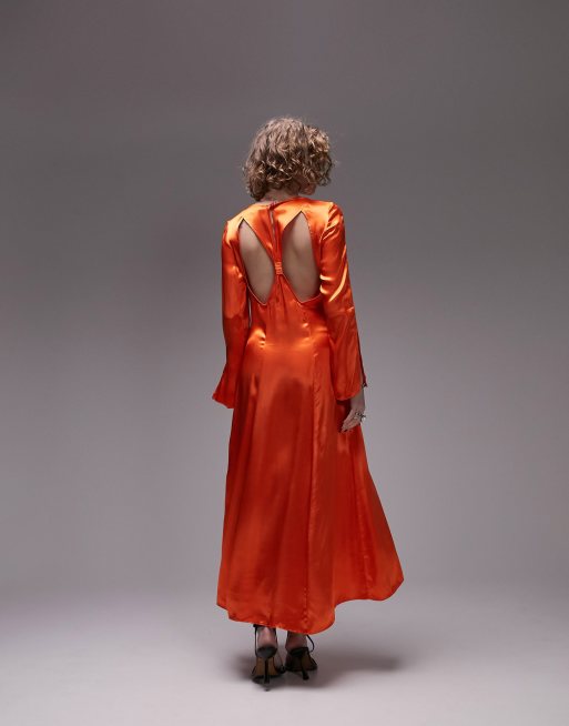 Topshop twist back occasion satin midi slip dress in orange ASOS