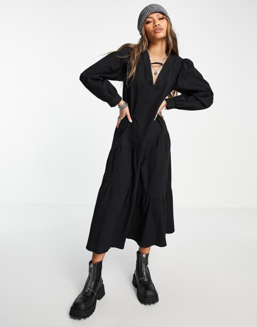 Topshop chuck on clearance dress, Topshop textured poplin chuck on dress in black clearance