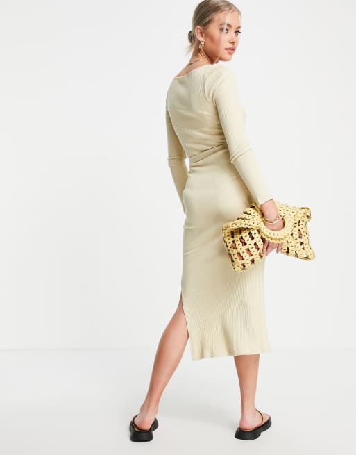 Ribbed belted column clearance dress, Neutral Ribbed Column Midi Dress clearance