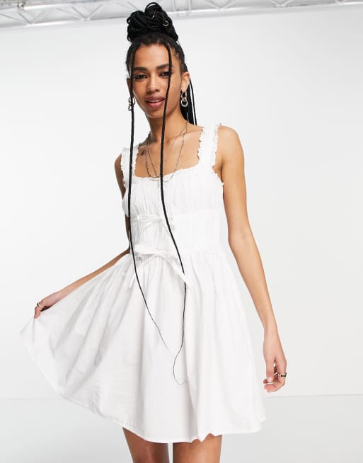 Topshop shirred channeled poplin flippy mini dress in white ASOS