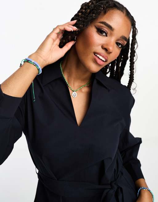 Mango navy blue clearance dress, Mango cinched tie waist shirt dress in navy ASOS clearance