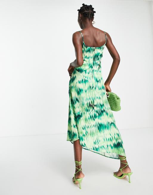 Topshop printed mesh midi dress with overlocked seams in turquoise floral