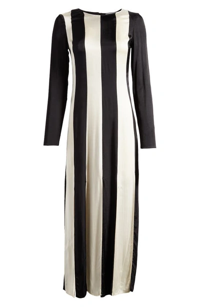 Topshop Stripe Long Sleeve Satin Maxi Dress In Black ModeSens