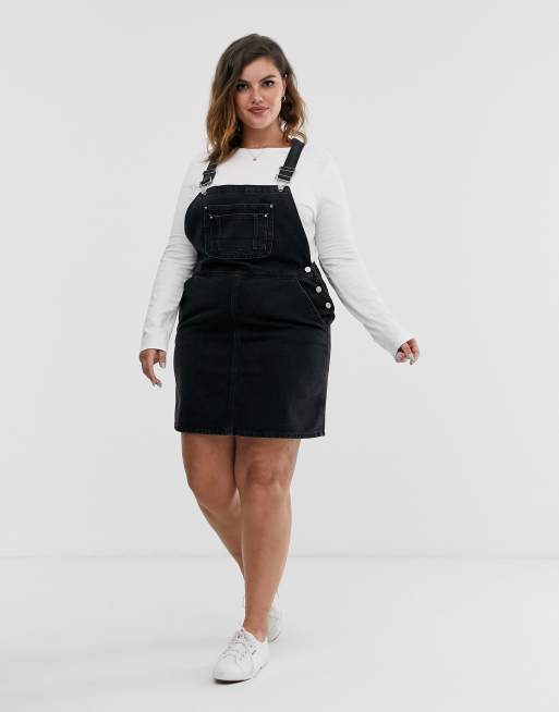 Black dungaree dress clearance plus size, ASOS DESIGN Curve denim dungaree dress in washed black ASOS clearance