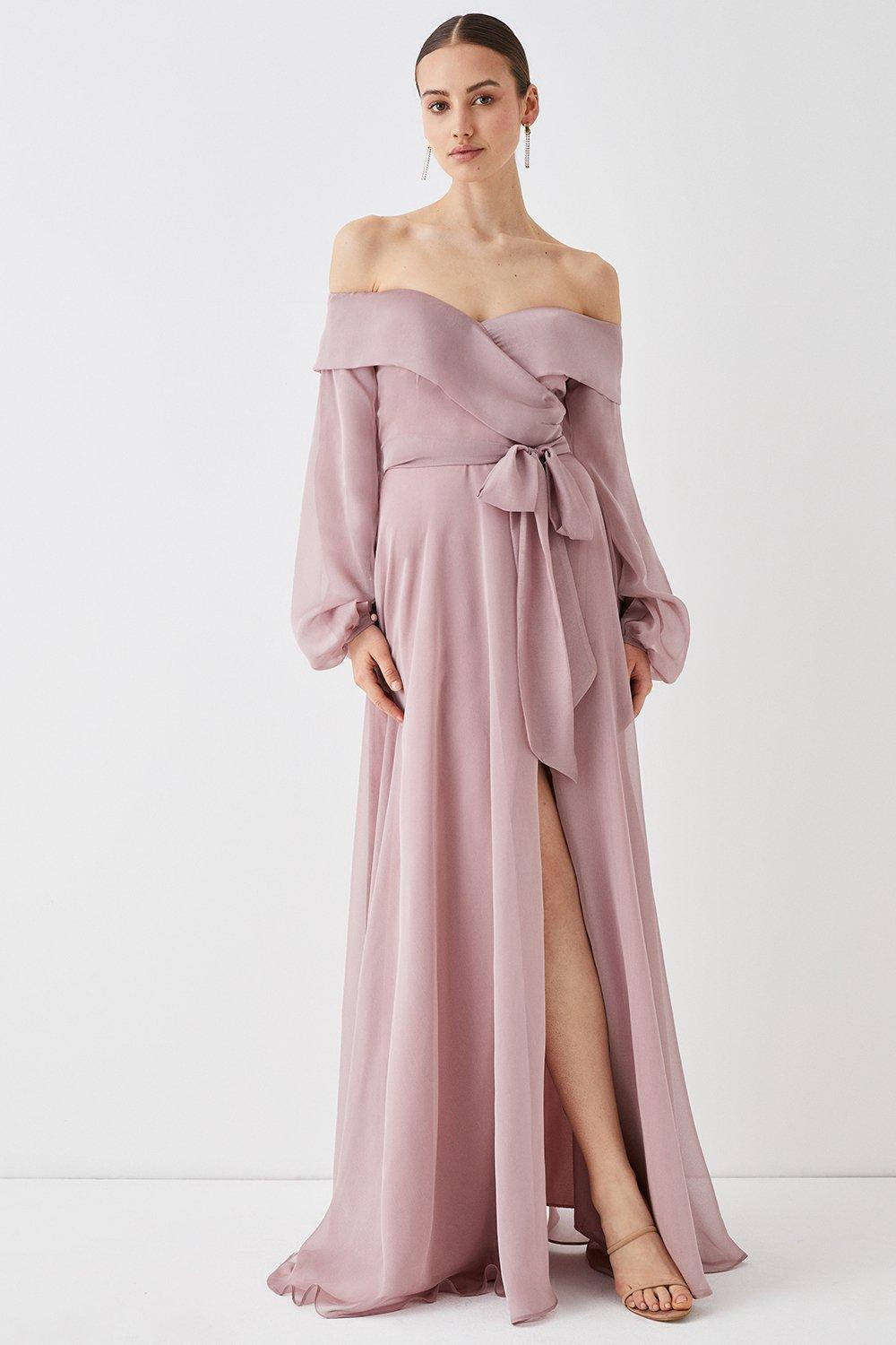 Wrap over long sleeve bardot clearance maxi dress, Dresses Bardot Wrap Fluid Skirt Maxi Dress Coast clearance