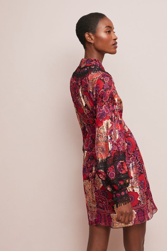 Free people all dolled up clearance mini dress, Anna Sui Golden Shimmer Dress Anthropologie clearance