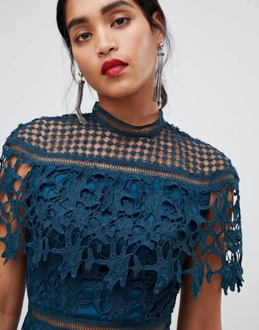 Chi chi london lace clearance high neck mini dress, Chi Chi London lace high neck mini dress in green clearance