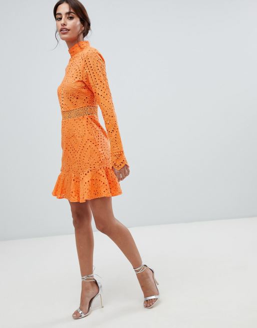 Lioness High Neck Cutwork Lace Mini Skater Dress ASOS