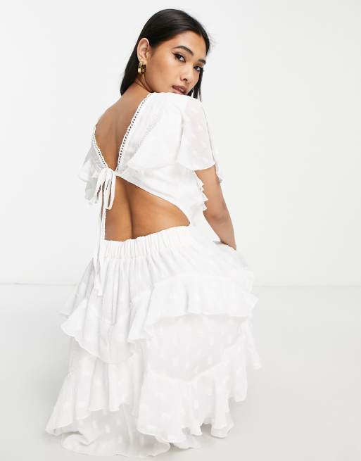 ASOS DESIGN textured tiered mini dress with lace insert and open back in white