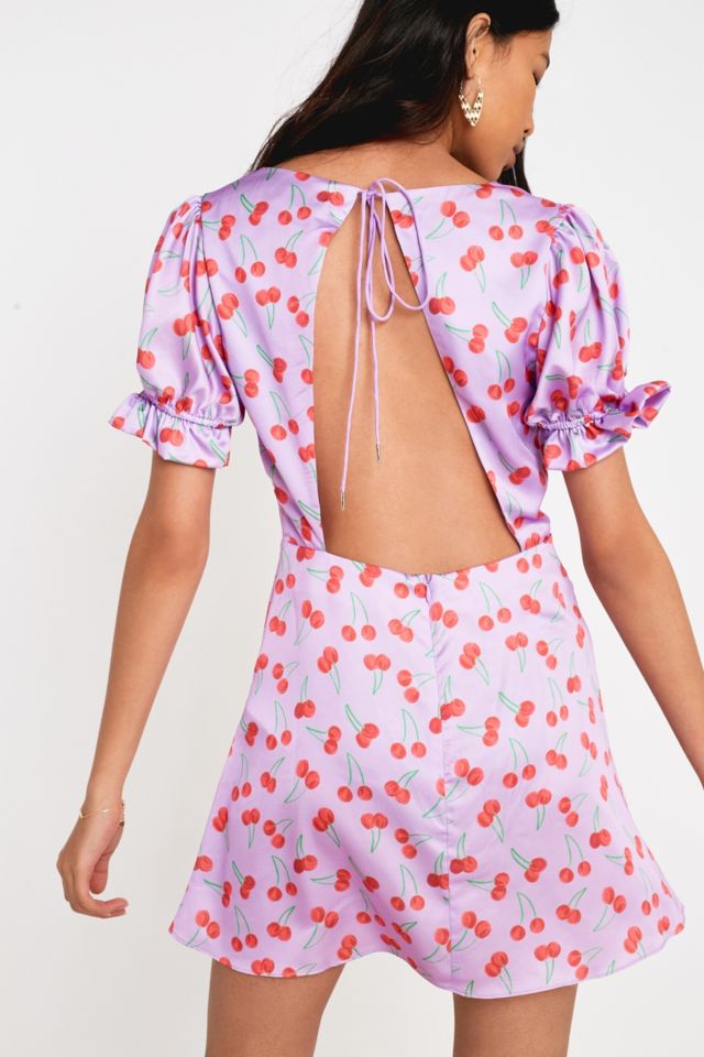 Finders Keepers Valentina Lilac Cherry Print Mini Dress