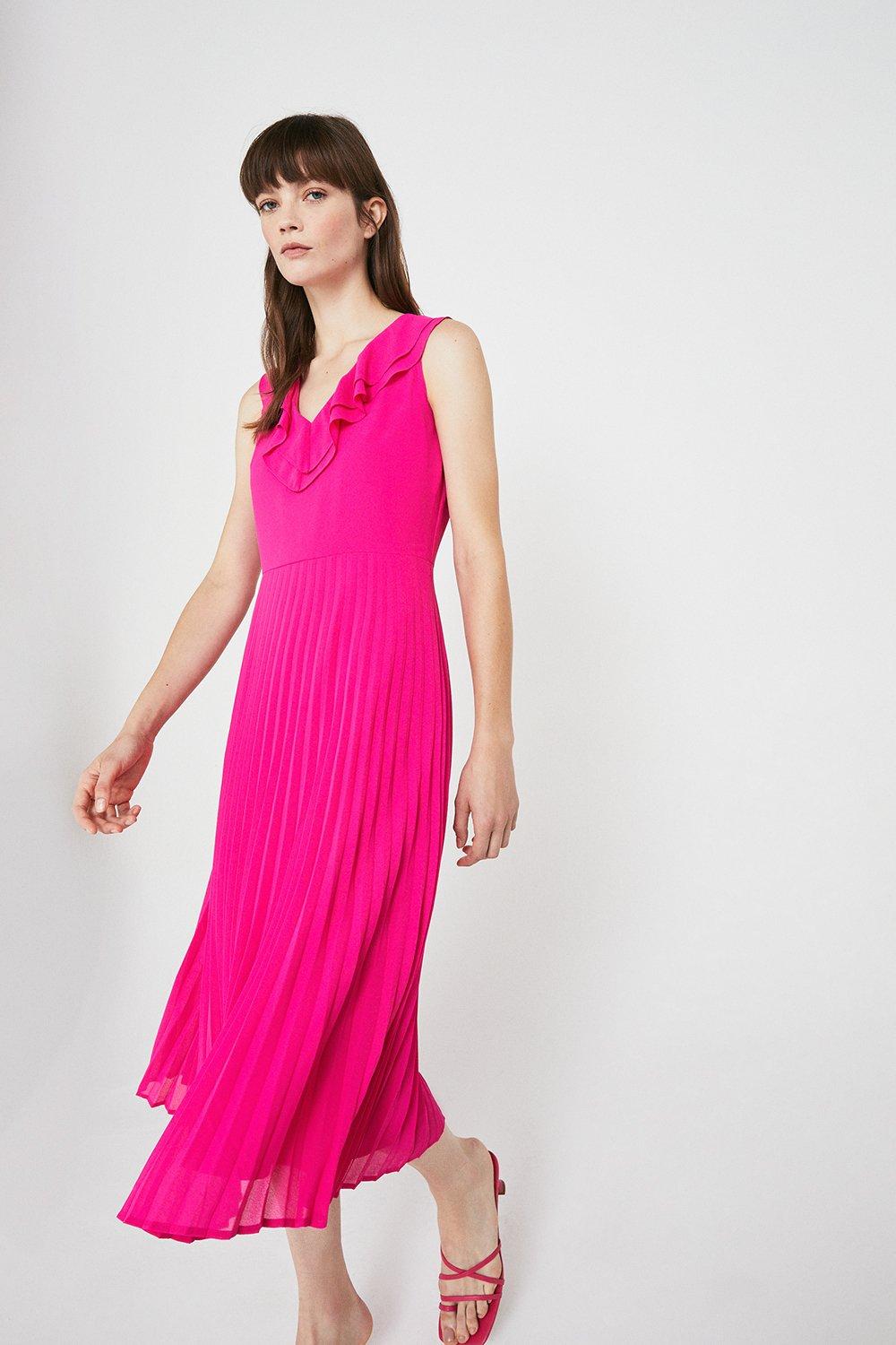 Warehouse pink pleated clearance dress, Warehouse pleated shirt dress in pink clearance