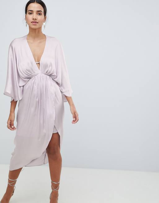 Plunge clearance kimono dress, ASOS DESIGN Structured Plunge Kimono Midi Dress With Peplum 39 clearance